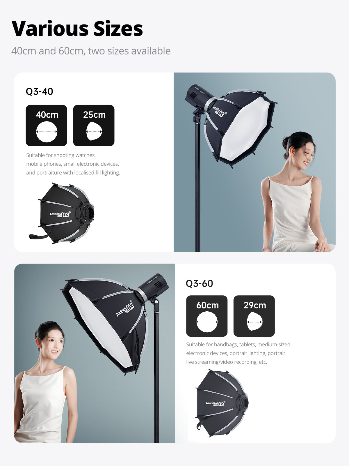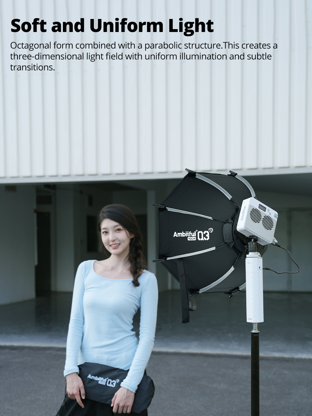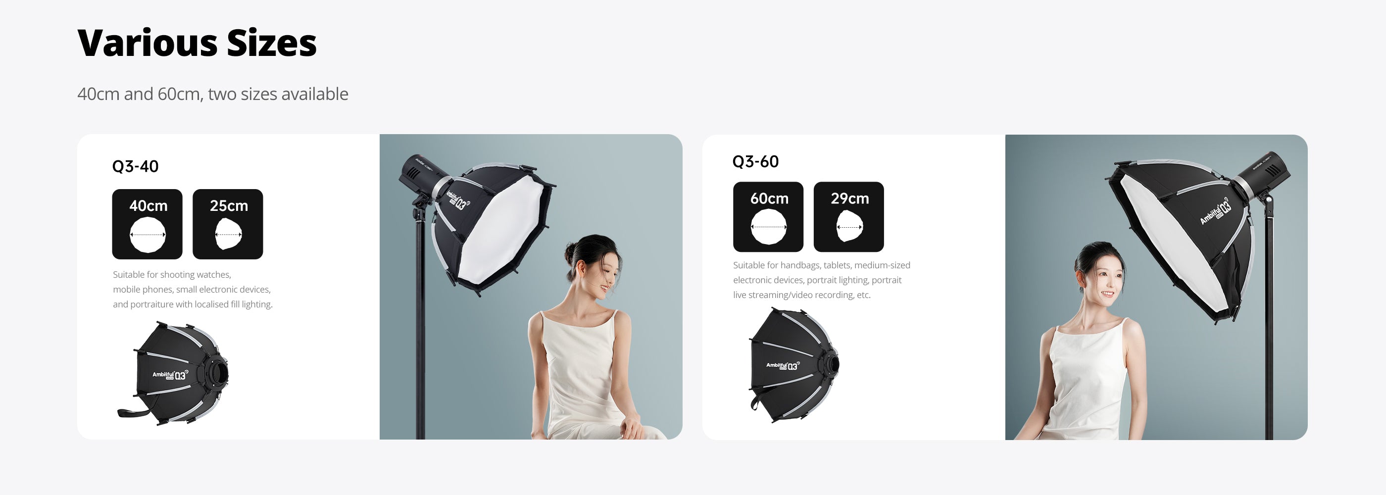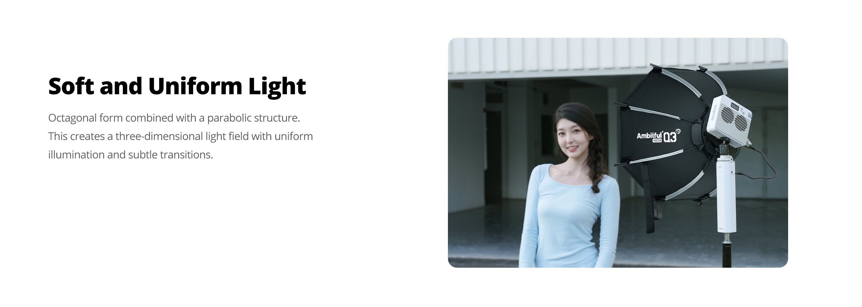 - Versatile Light Control: Offers multiple setups—soft wrap-around light, ultra-soft diffusion, or focused beam with an optional 45° honeycomb grid.