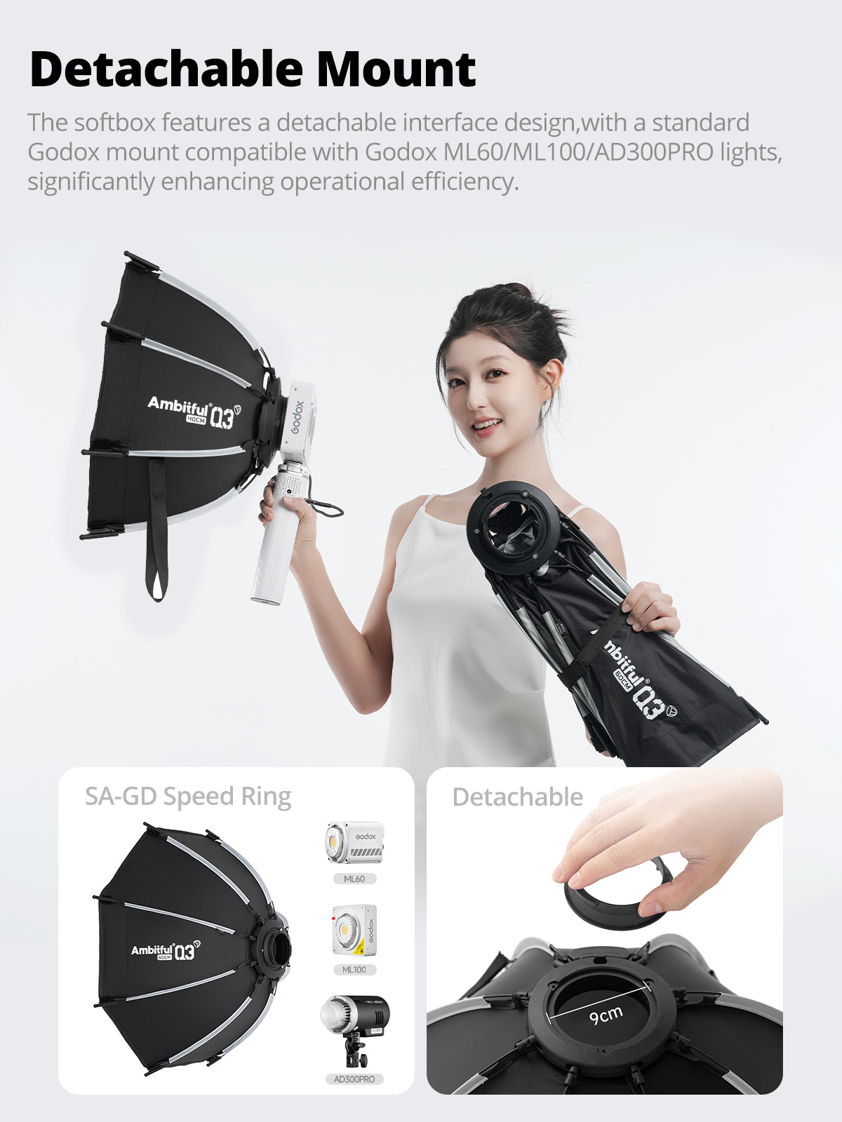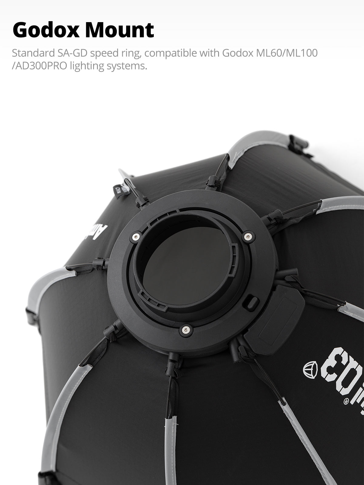 - Detachable Bayonet Mount: Features a SA-GD adapter ring for easy one-handed use and compatibility with Godox ML/AD series lights.