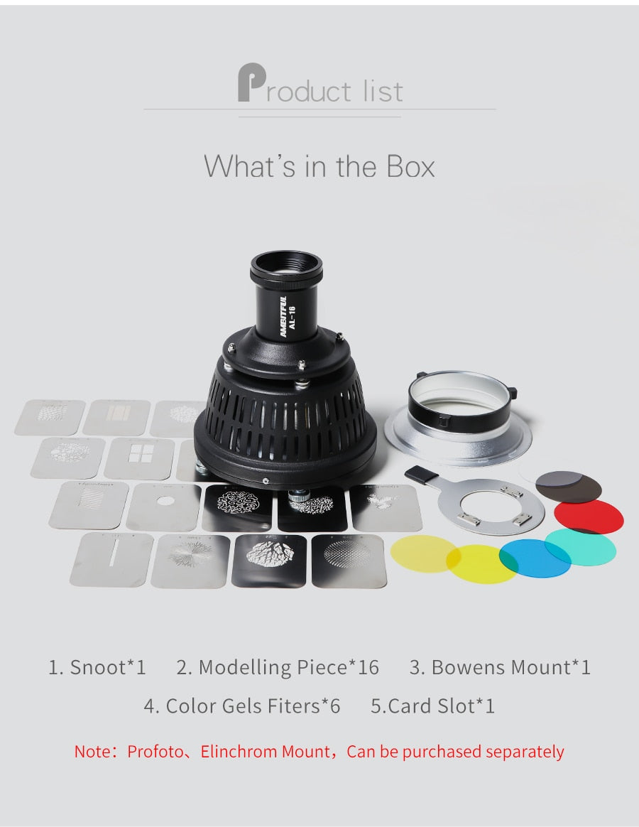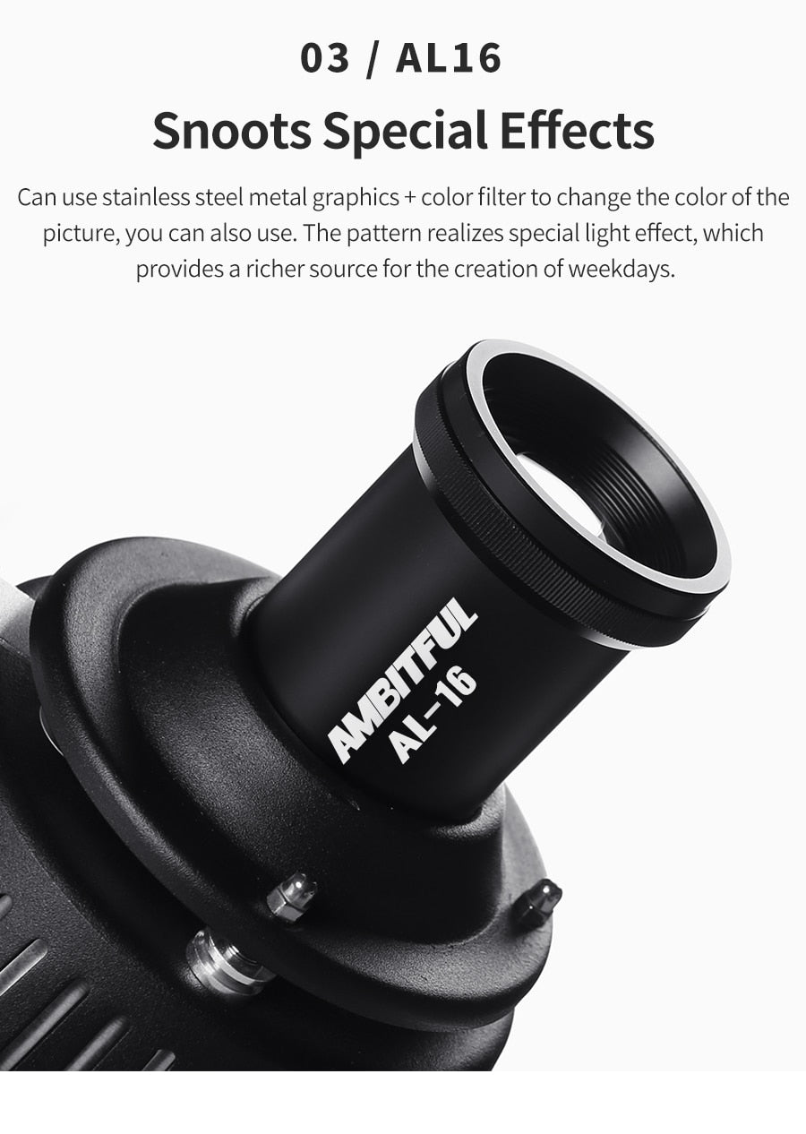 AMBITFUL AL-16 Focalize Conical Snoot Optical Condenser Art Special Effects Shaped Beam Light Cylinder with Shape and Color Gel focusing rod