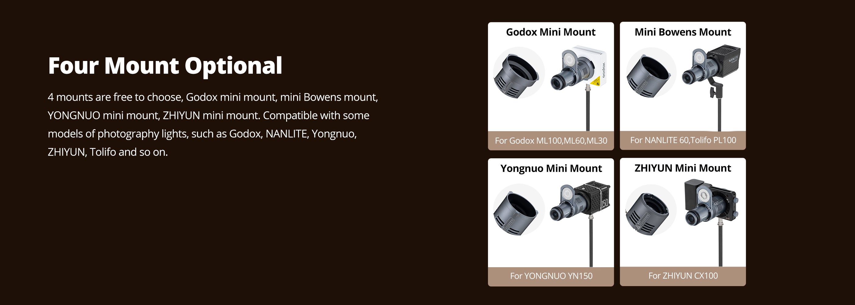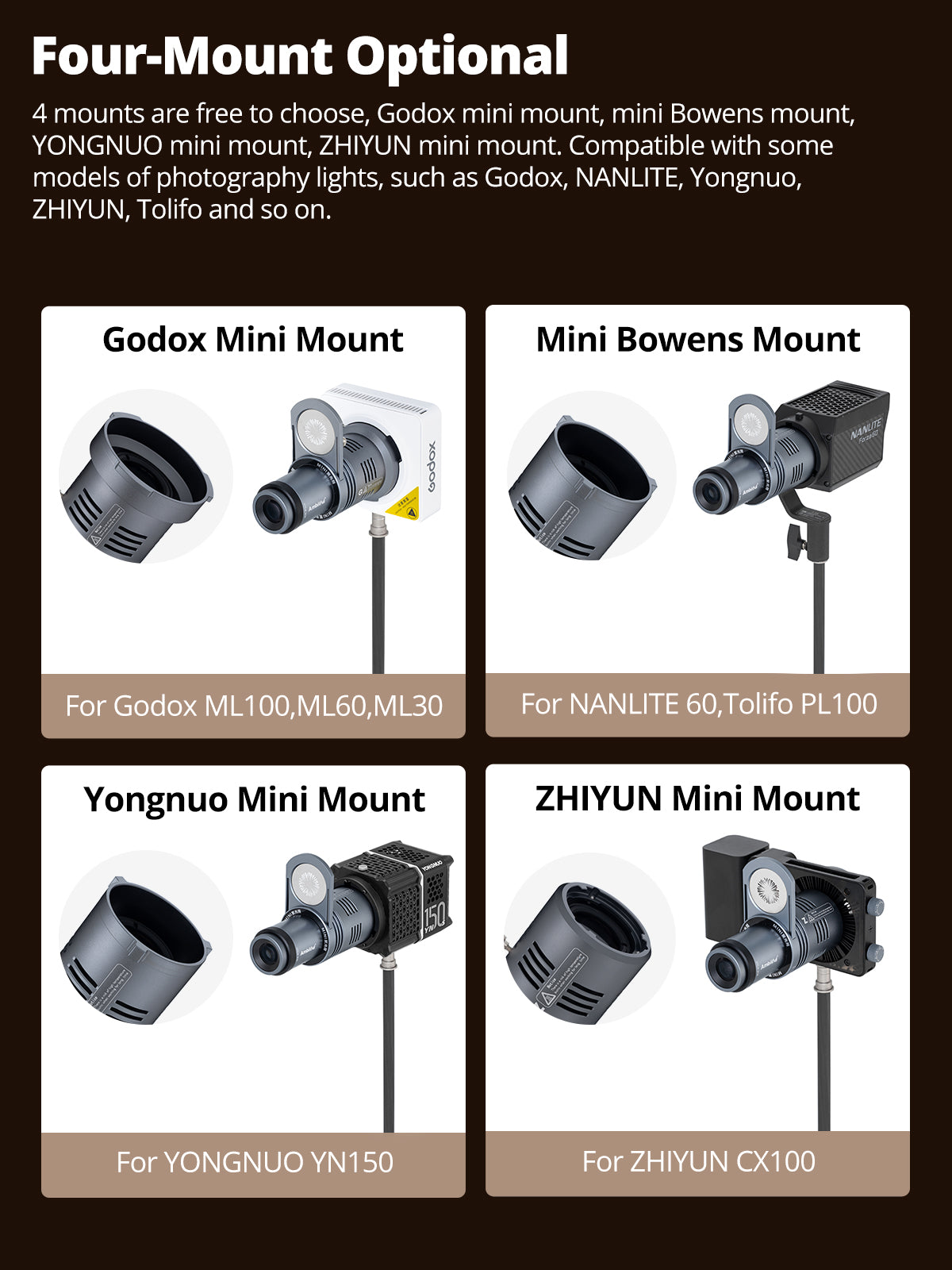 - Godox-Compatible: Designed for Godox COB lights (ML/MC series) and AD300Pro flash.