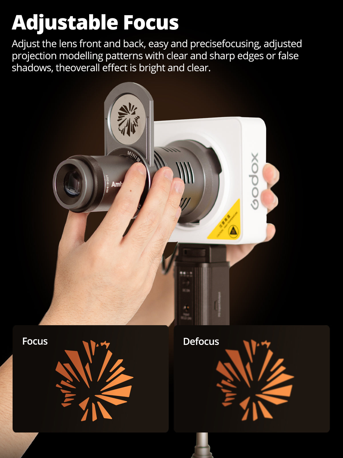 - Precise Focus Control: Adjustable ring for sharp to soft projection effects.