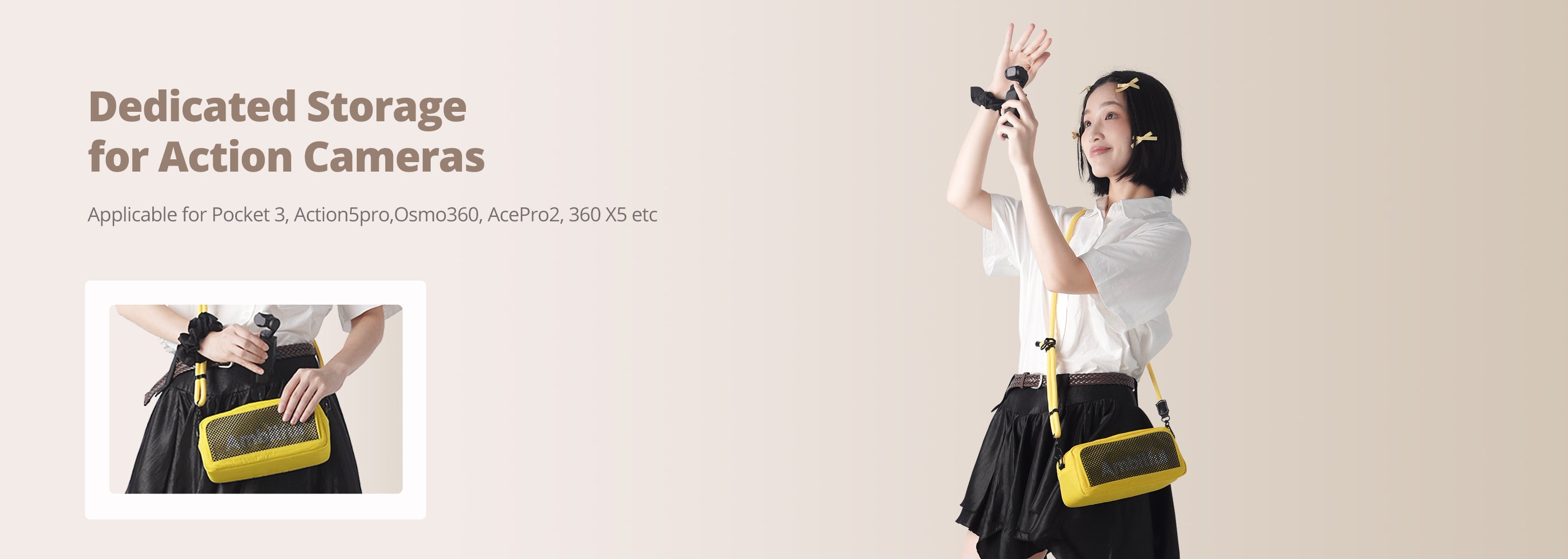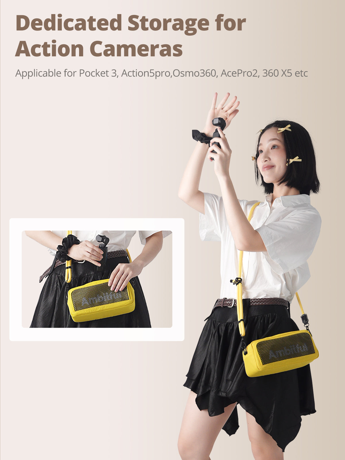 Dedicated Camera Storage: Fits Action 5 Pro, Ace Pro 2, Pocket 3, and similar models; includes mesh organizers and privacy pockets.