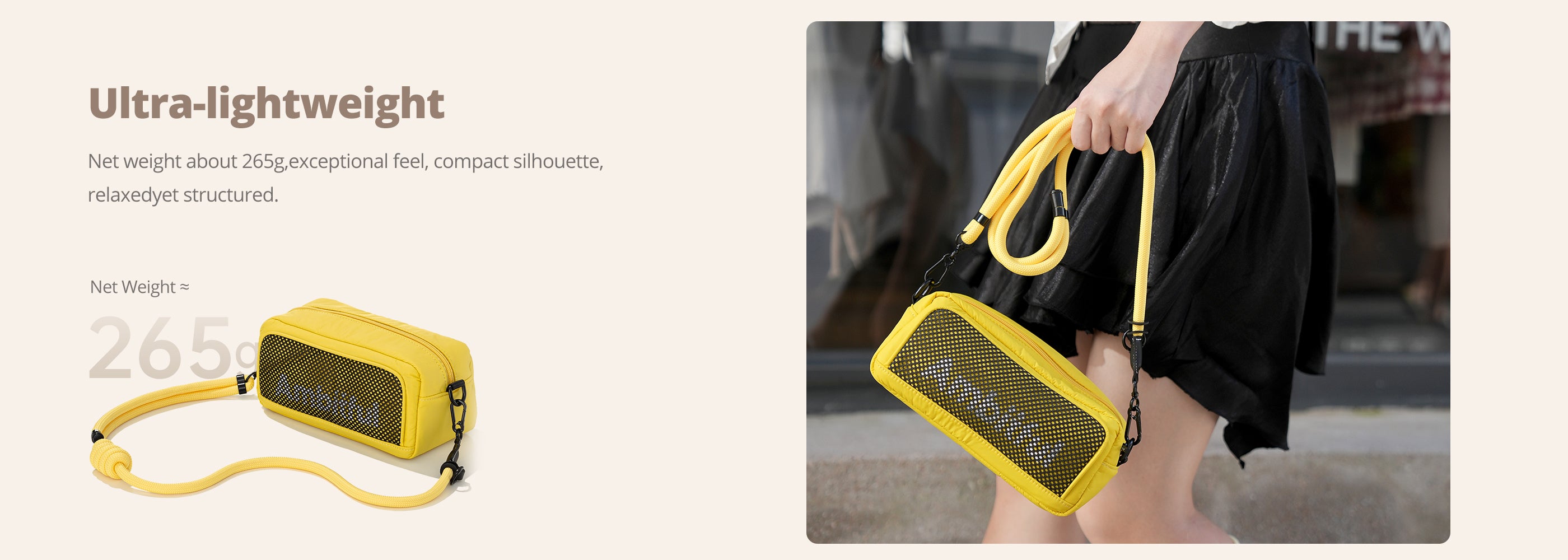Compact & Lightweight: Measures 9.05"×4.33"×4.13", weighs only 265g; available in yellow, beige, and black.