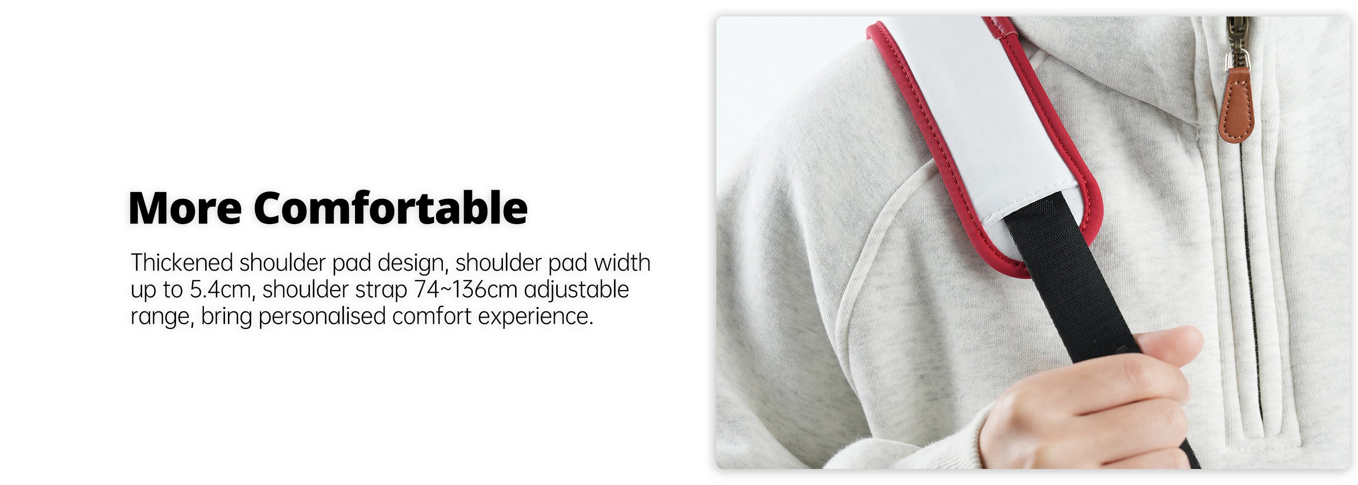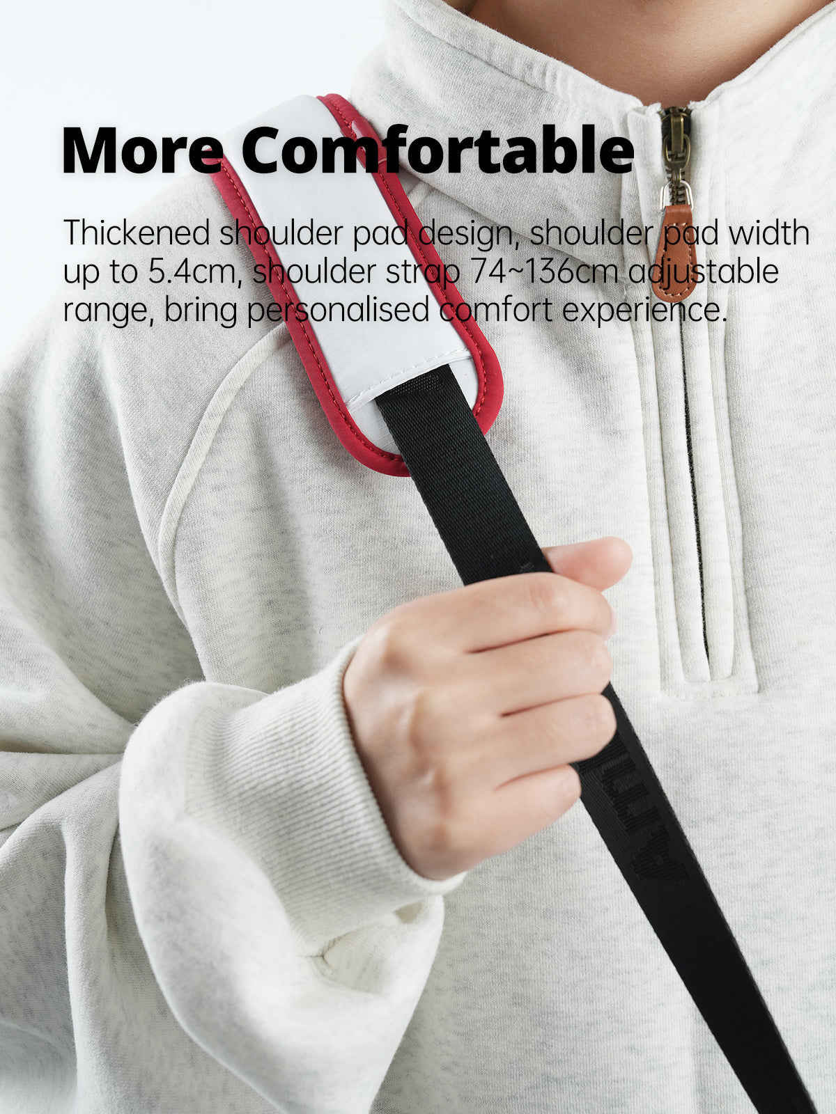 - Thickened shoulder pad (5.4 cm) and adjustable strap (74-136 cm) for comfort