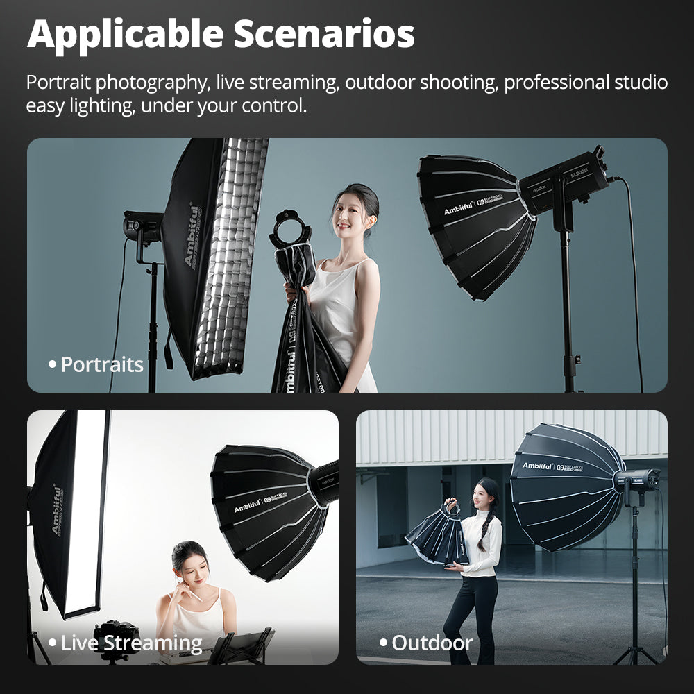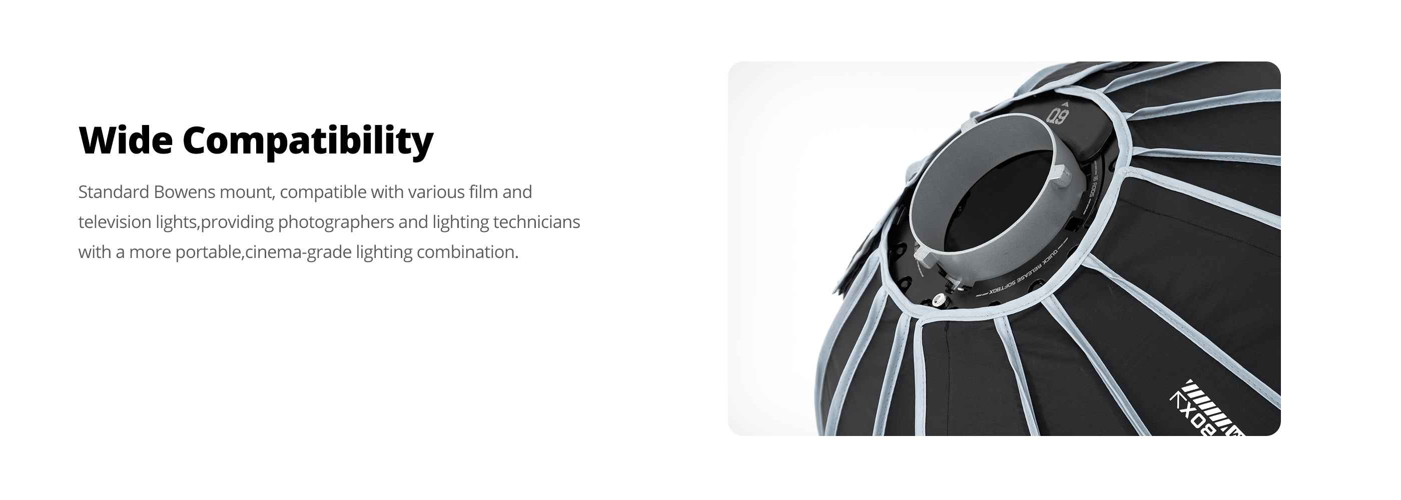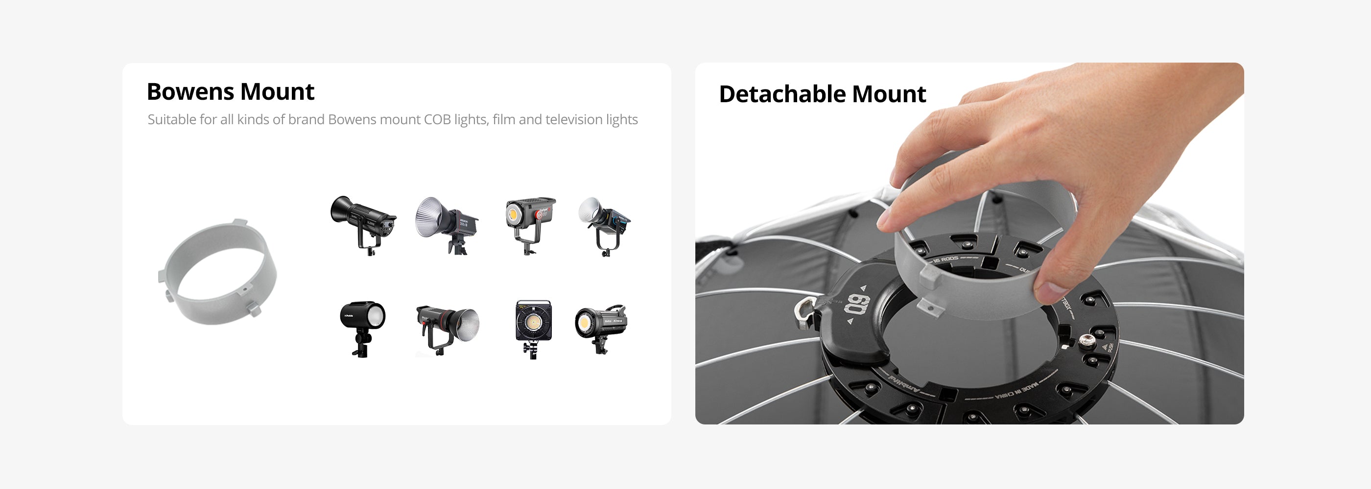 - Universal Bowens Mount: Compatible with major brands like Godox and Aputure for versatile use.