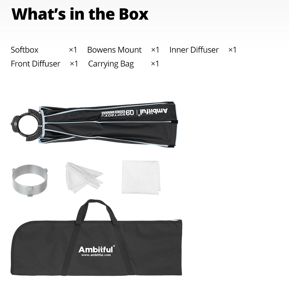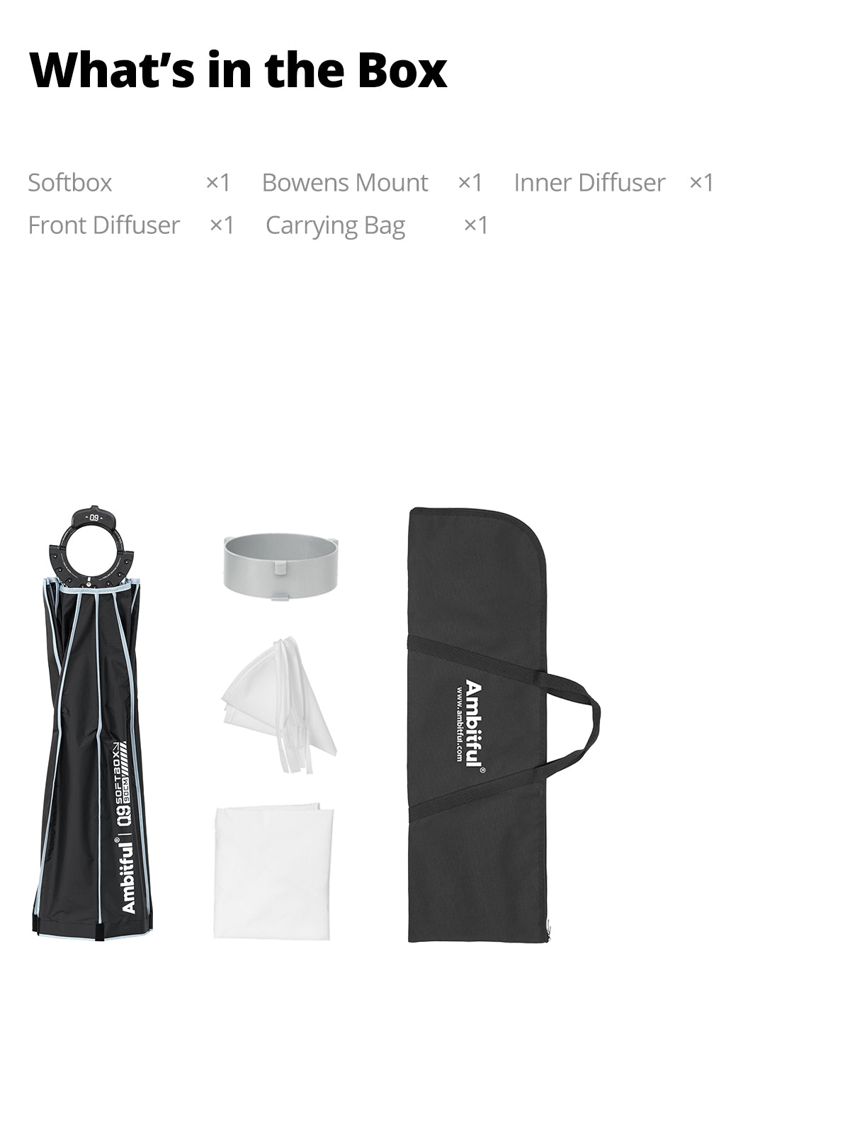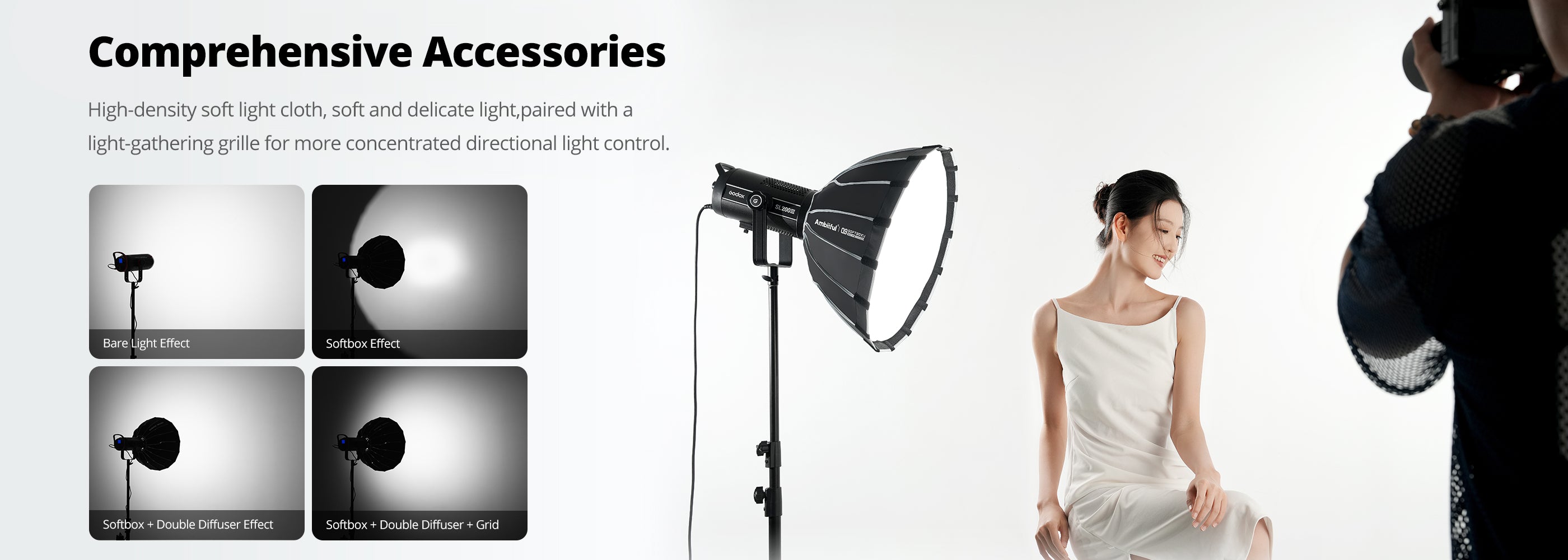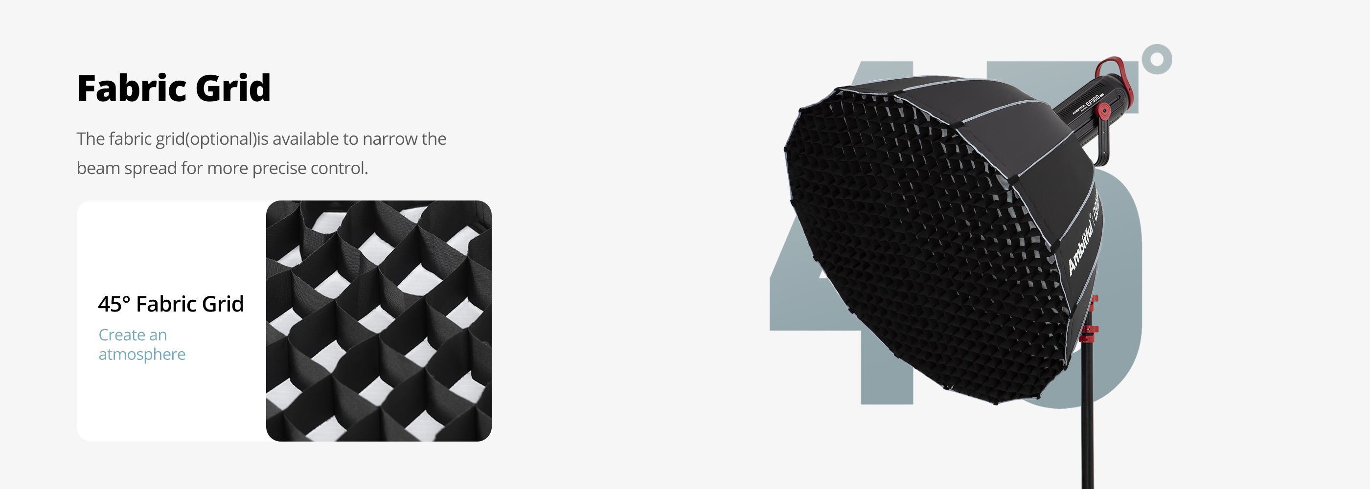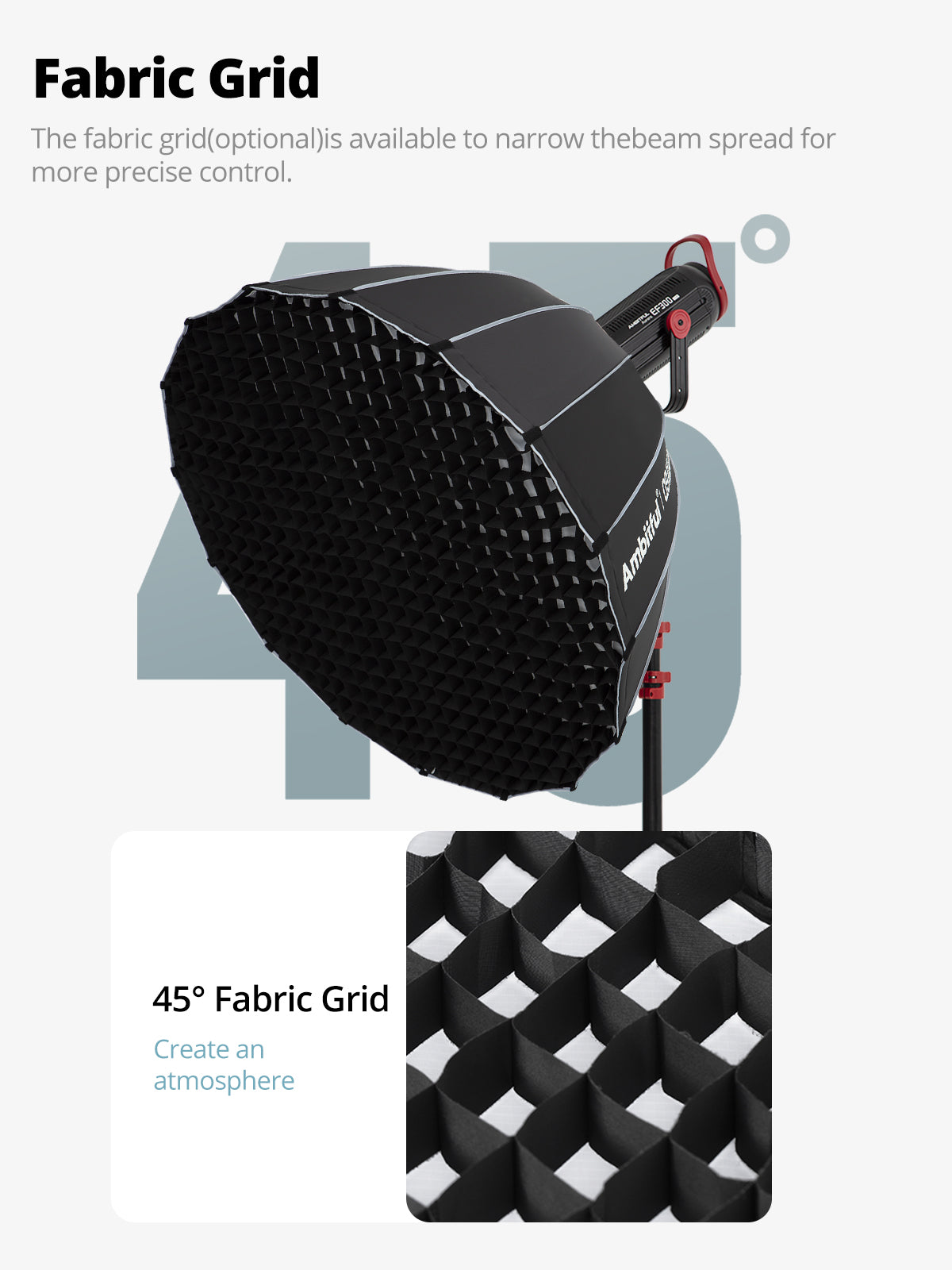 - Complete Light Control Kit: Includes dual diffusers and a 45° honeycomb grid to shape light and reduce spill.