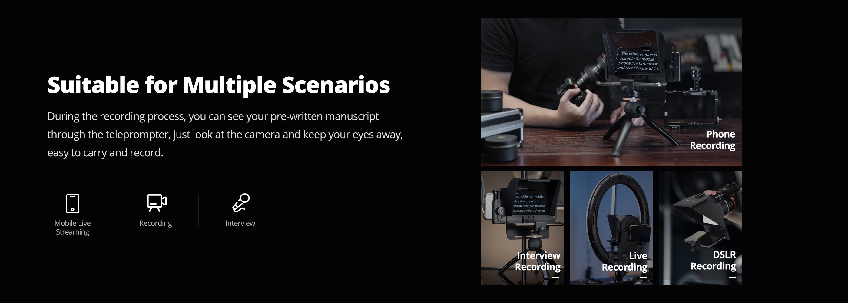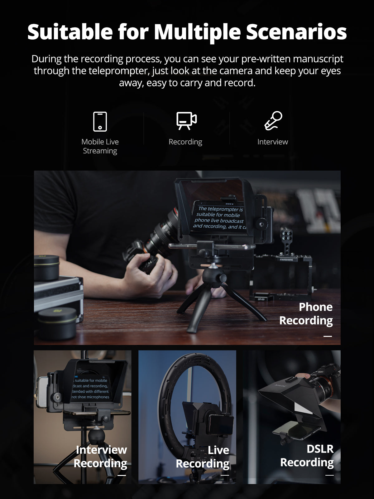 - 7.5" Mini Teleprompter: Ideal for live streaming, interviews, and video creation, reducing retakes and improving workflow efficiency.