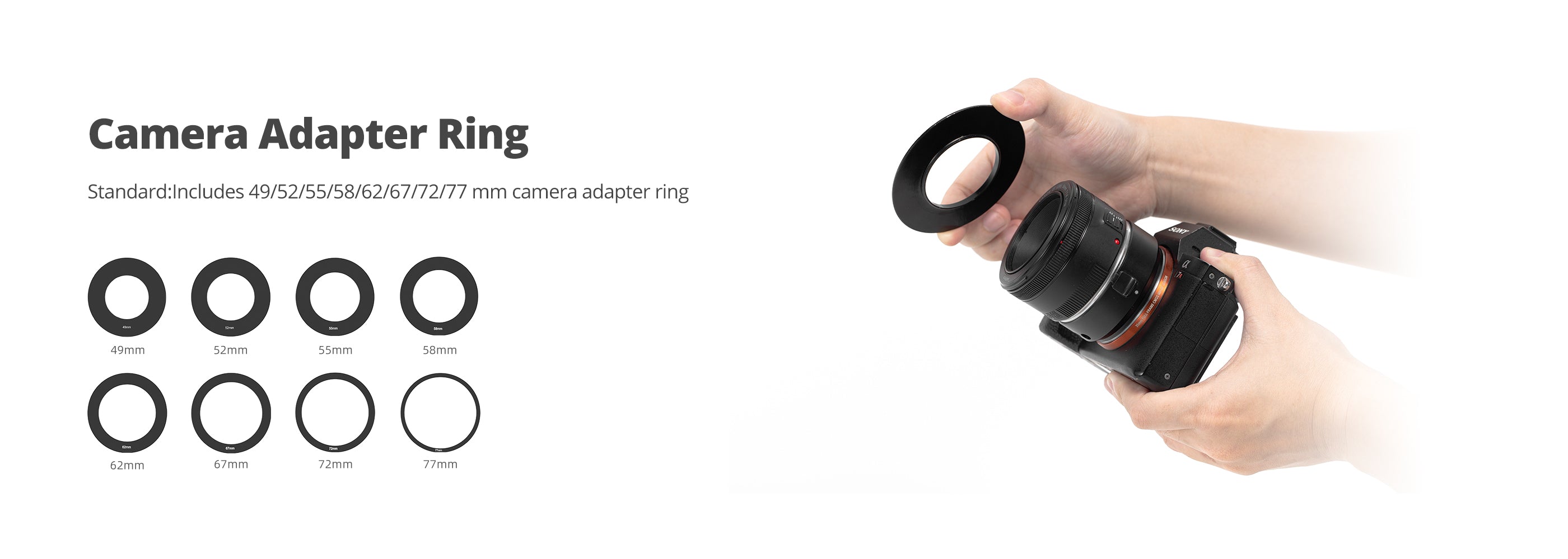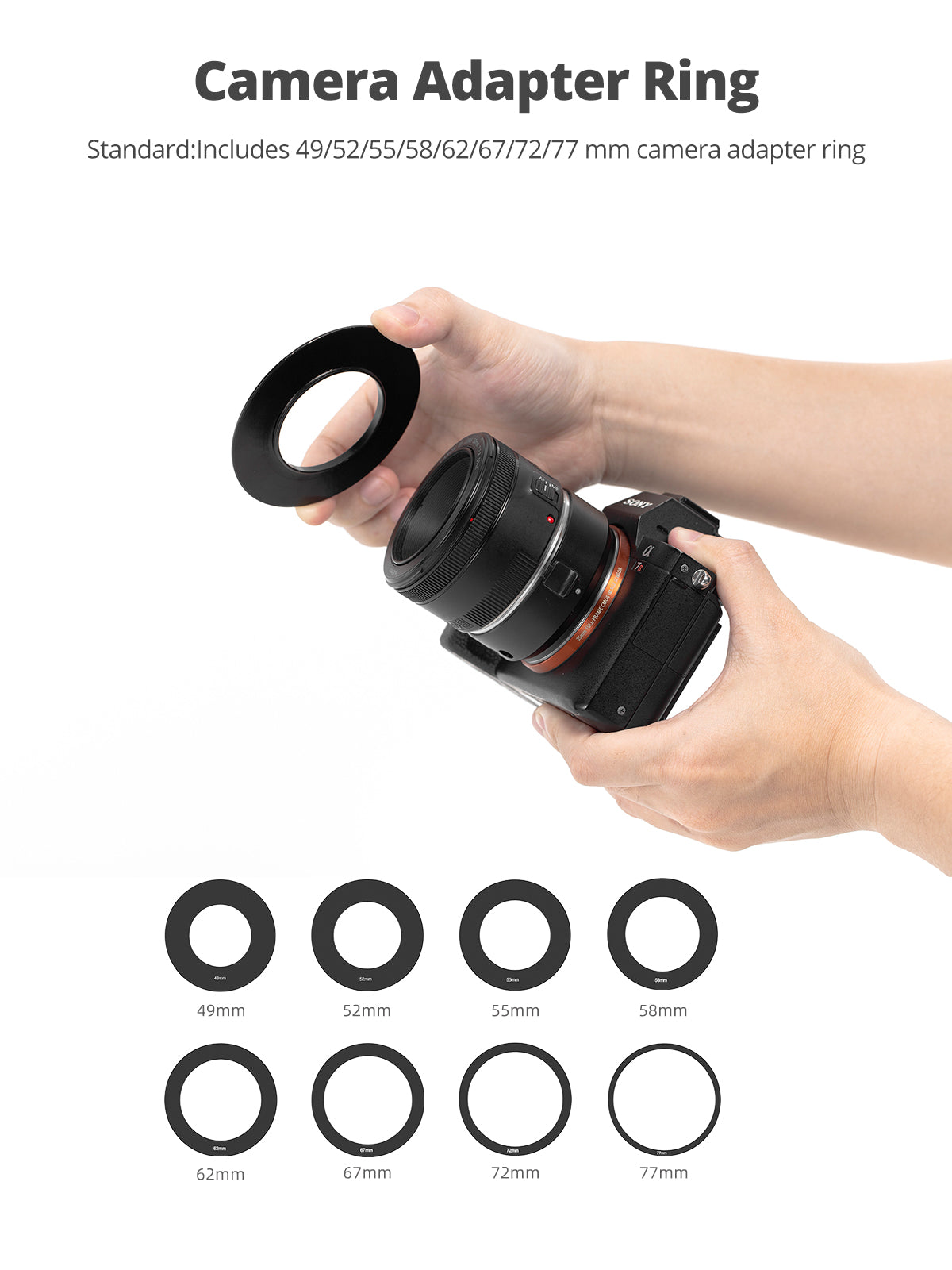 - Wide Compatibility: Includes camera adapter rings (49-77mm) and smartphone clip (fits 2.2"-3.2" width); features 1/4" screw and cold shoe for tripods/mics/lights.