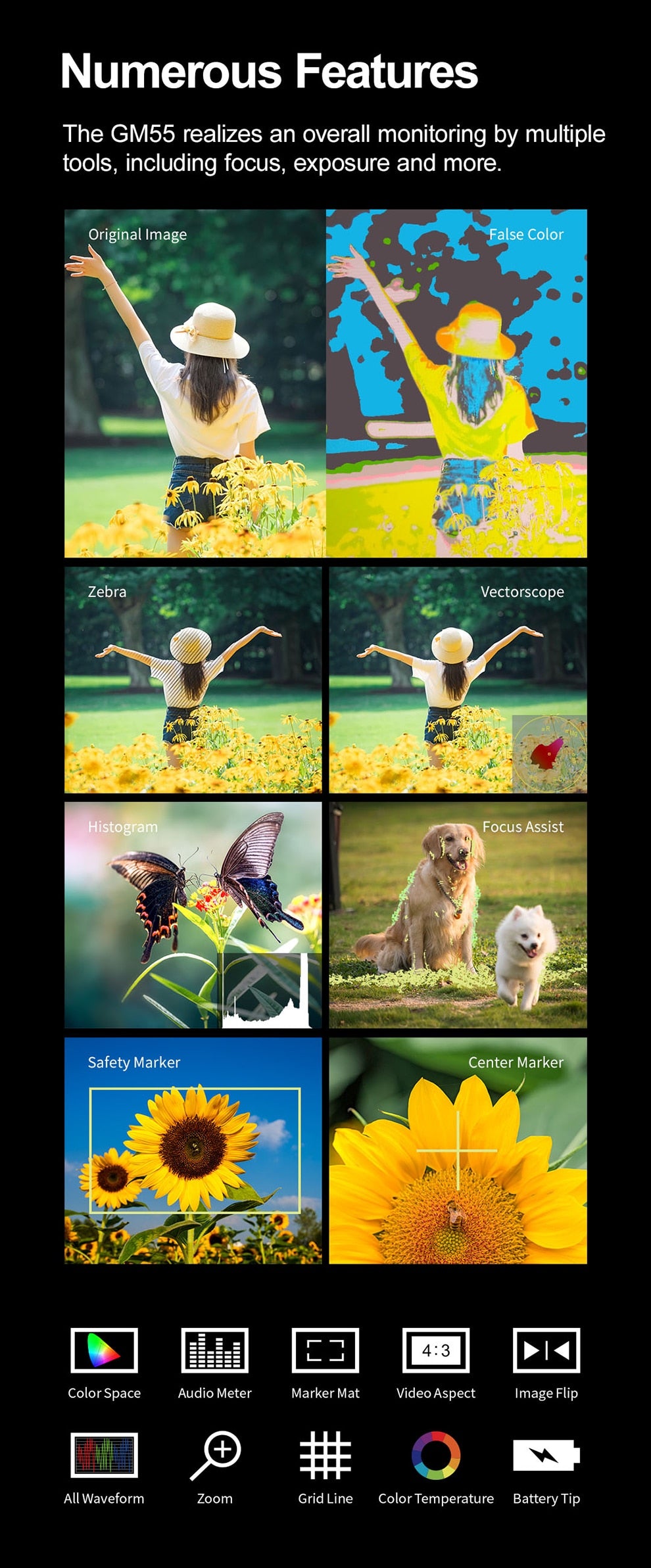 Godox GM55 4K Monitor 5.5 Inch DSLR 3D LUT Touch Screen IPS FHD 1920x1080 Video 4K HDMI Field Monitor Dslr PK FEELWORLD F6 PLUS
