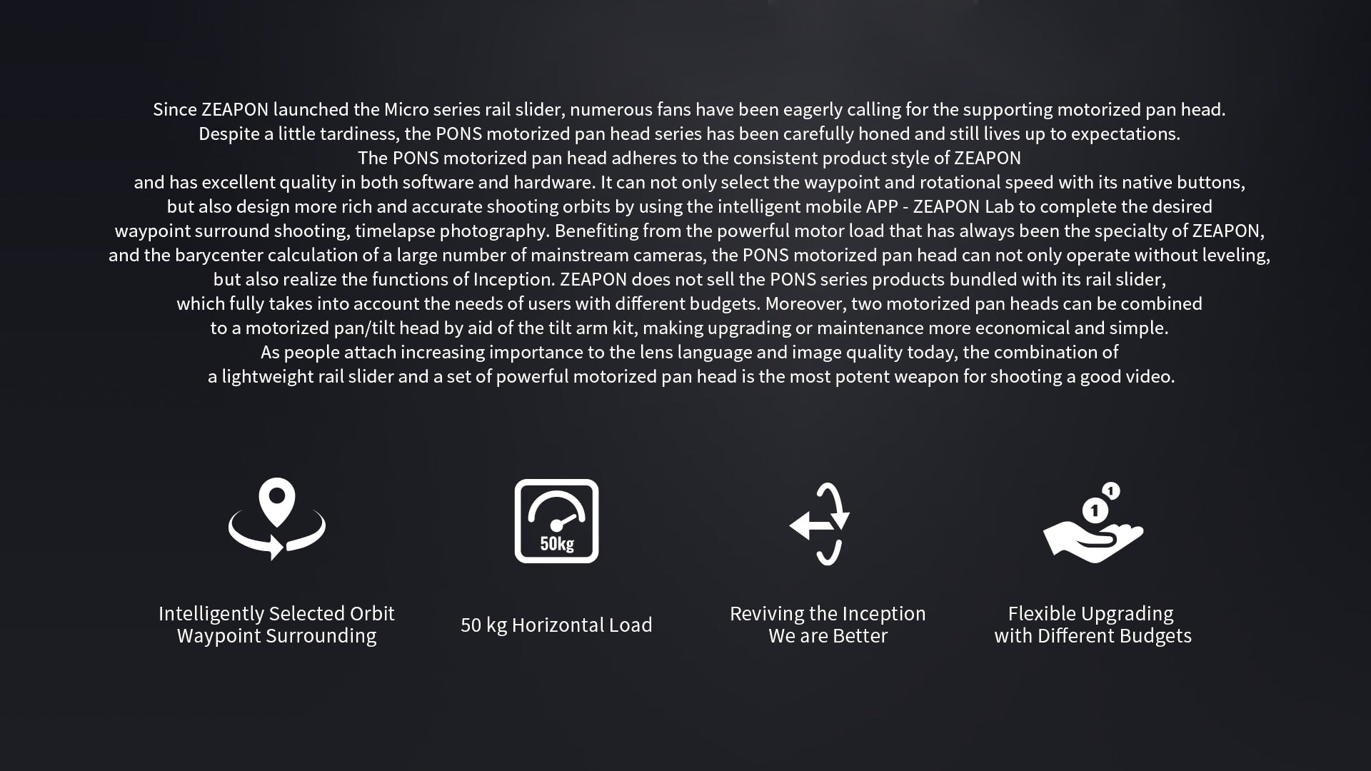 ZEAPON PS-E1 PD-E1 PONS Motorized Pan Head The Horizontal Load Up To 50 kg Single Axis Double Axis Linkage